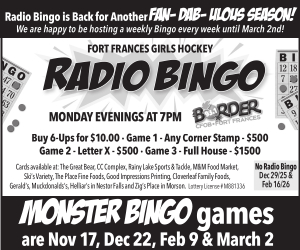 Copyright 2025 Fort Frances Times Ltd. All rights reserved. | 116 First St. E. | Fort Frances, ON P9A 1K2 | (807) 274-5373 | (800) 465-8508 | ISSN 1911-3862