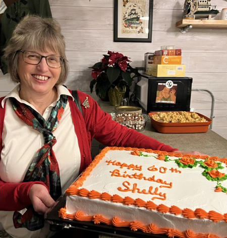 Shelly Manty enjoying her surprise birthday party. Shelly turned 60 on December 8th. She was honoured with a party December 19th. A great time was enjoyed by all attending.