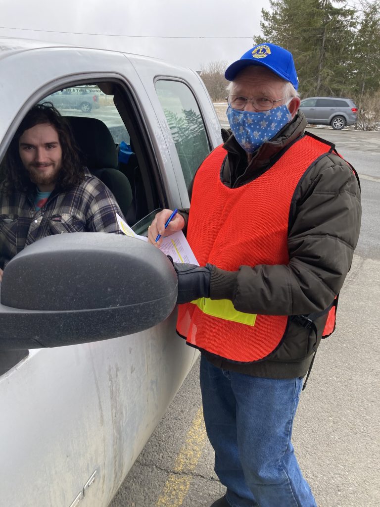 Telford Advent, a volunteer from the WRRD Lions Club was on hand to help schedule parking and admission to the NWHU Covid 19 Vaccination Clinic at the Rainy River High School on Tues, March 30, 2021