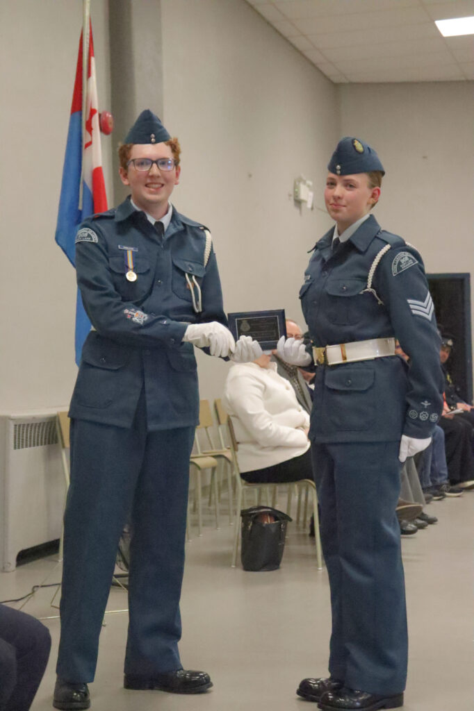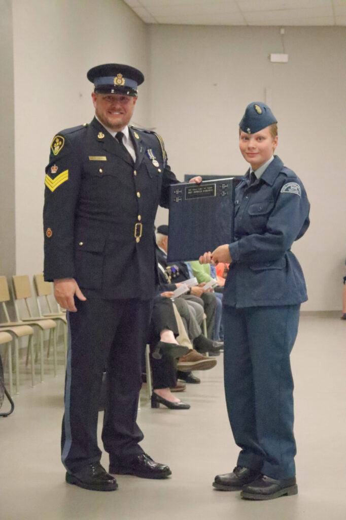It was a night full of celebration and recognition as the 908 Rainy Lake Royal Canadian Air Cadet Squadron held their Annual Ceremonial Review and Awards presentation on Wednesday, June 11, 2025, at the Memorial Sports Centre auditorium. The annual review caps off the cadet’s season of achievements and activities, offering them a chance to be recognized for the skills they have worked and honed over the past year, as well as other recognitions like those given to cadet who are aging out of the program at the age of 19. This year’s Reviewing Officer was Acting District Director Kim Beaudry. Members of the air cadets also received a number of financial donations from longtime supporters, including the Royal Canadian Legion Branch 29 in Fort Frances and Royal Canadian Legion Branch 99 in Emo, the Kiwanis CLub of Fort Frances, and H2O2Go. The full list of awards presented that night is below.