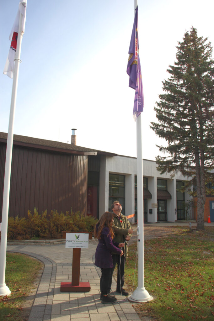 the first event took place at the Fort Frances Civic Centre, where deputy mayor Mike Behan, along with representatives from Riverside Community Counselling Services, the Rainy River District Women’s Shelter of Hope and other members of the community saw the raising of the Shine the Light flag. Behan also read the official proclamation to declare November as Woman Abuse Awareness and Prevention Month in Fort Frances.