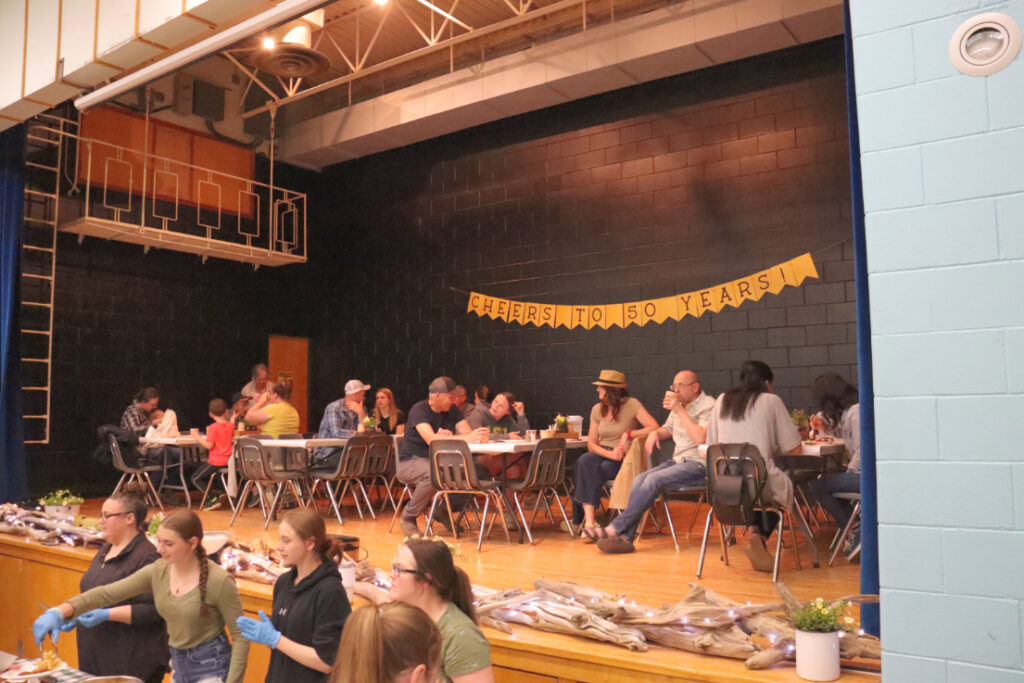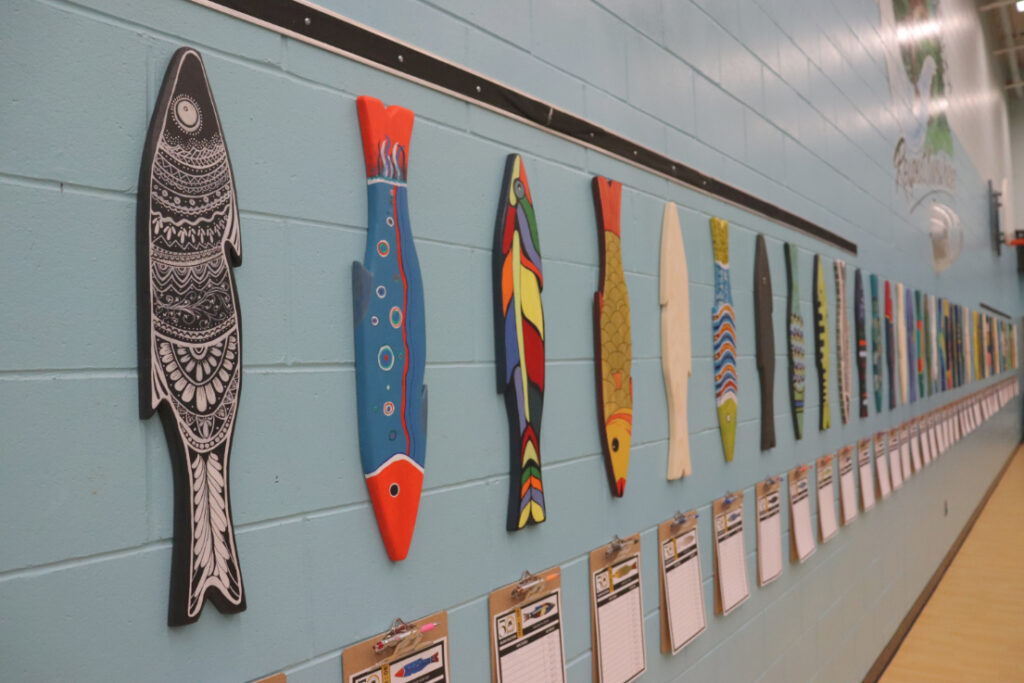 Sturgeon Creek School in Barwick, Ontario, celebrated its 50th anniversary on Thursday, May 30, 2024, with a fish fry and an assortment of other fun activities. Along with plenty of delicious food to eat, visitors to the celebration were able to test their luck in a silent auction for one of the special and unique painted fish that had been custom decorated by students and area artists. The silent auction collected close to $3,000, according to the school’s Facebook page. A classroom in the school was also set up to provide a glimpse into the past 50 years of school life with a number of photo albums, collages and a special slideshow featuring students, staff and more. While the weather outside was far from perfect, there was still outdoor fun to be had with basketball, disc-golf and Métis jigging.