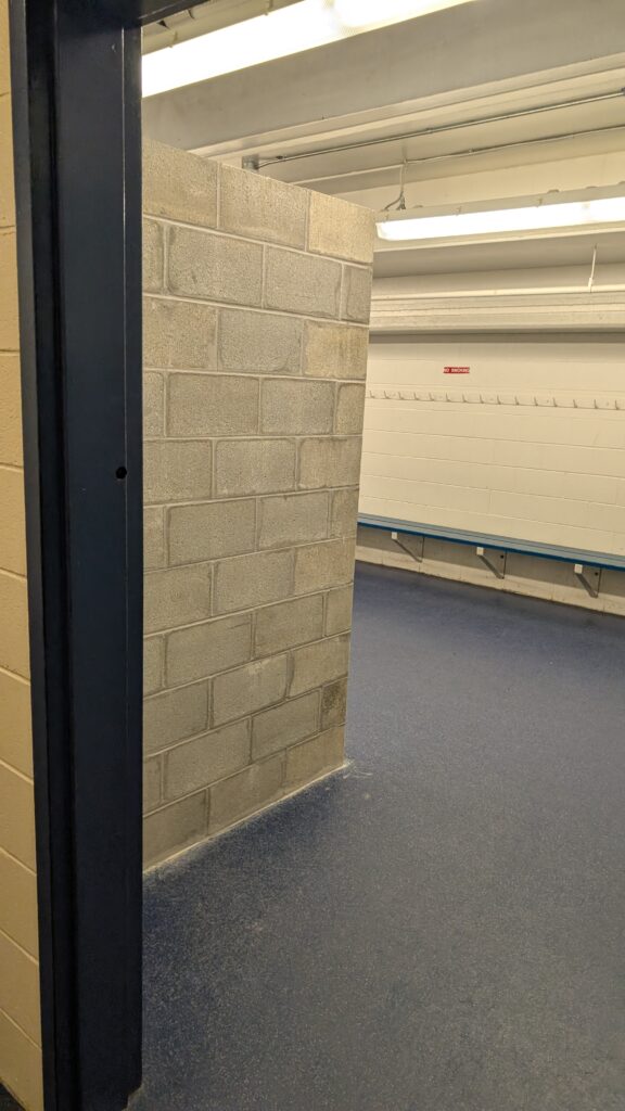 Over the last few months users at the Memorial Sports Complex might have noticed piles of bricks under tarps in the halls, these bricks now form privacy walls in the six of the arenas’ public dressing rooms (four in Ice for Kids and two in ‘52 Canadians).