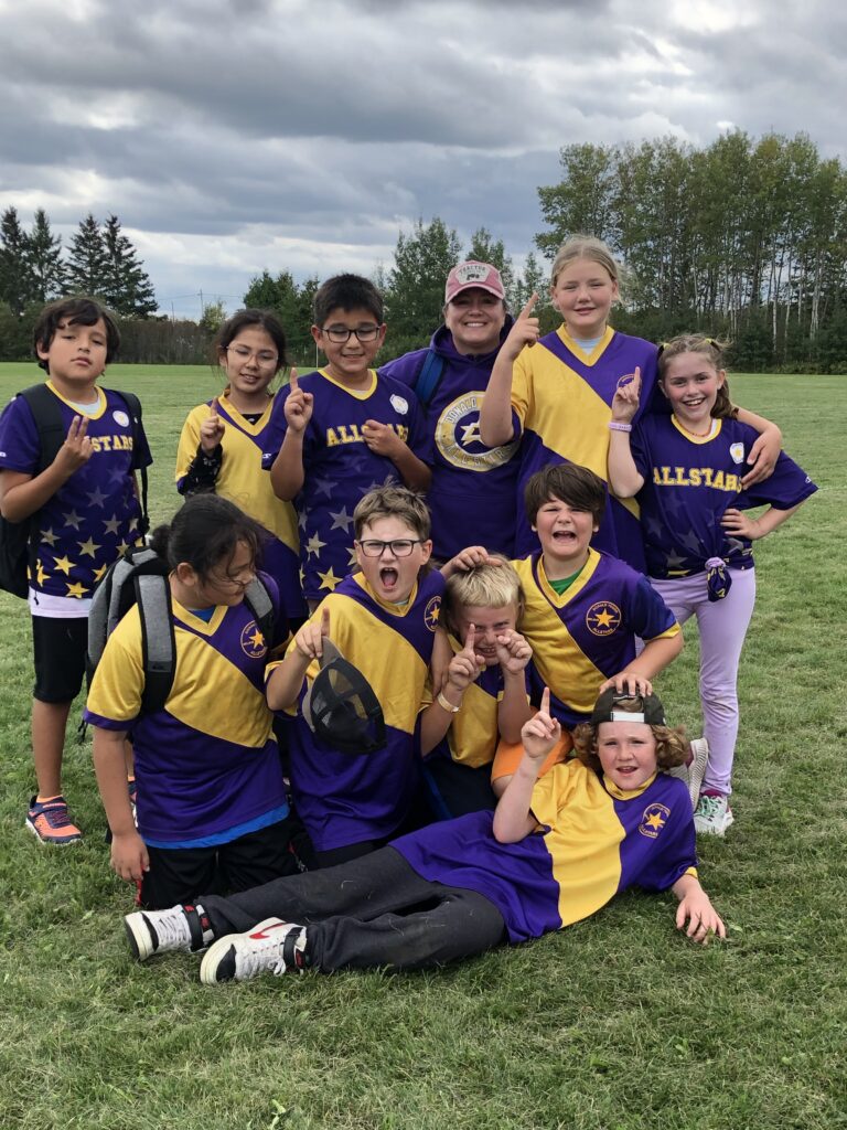 Above, Grade 5/6 students from Donald Young School all smiles as they wrapped up with four out of four wins.