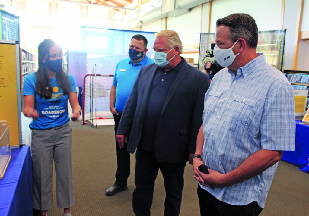 Ontario Premier Doug Ford made a stop in Fort Frances this morning as part of a district-wide tour. Ford, along with MPP Greg Rickford, were at Fort Frances Public Library Technology Centre, where a presentation by Science North was given to them as they prepare for the launch of the Great Northern Ontario Roadshow to support the tourism industry in the north. The premier’s tour will end at the Sales Barn where he will have a meet and greet with farmers.